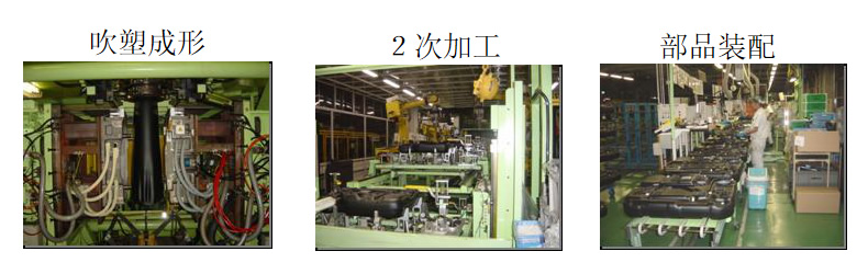把树脂制燃油箱作为主力产品的八,马上把对应PZEV规定(由美国加利福尼亚州大气资源局CARB制定的Partial-Credit Zero Emission Vehicle 气体排放规定)的燃油箱在进行产品化的材料比例与燃油箱素材开发上独自专注地作了努力研究。在最高级的安全性,并且兼顾考虑到环境这两方面上,提高了商品的竞争力。