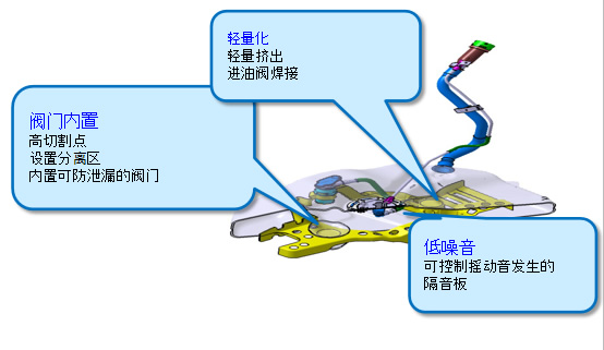 超低渗透 低摇动音的燃油系统